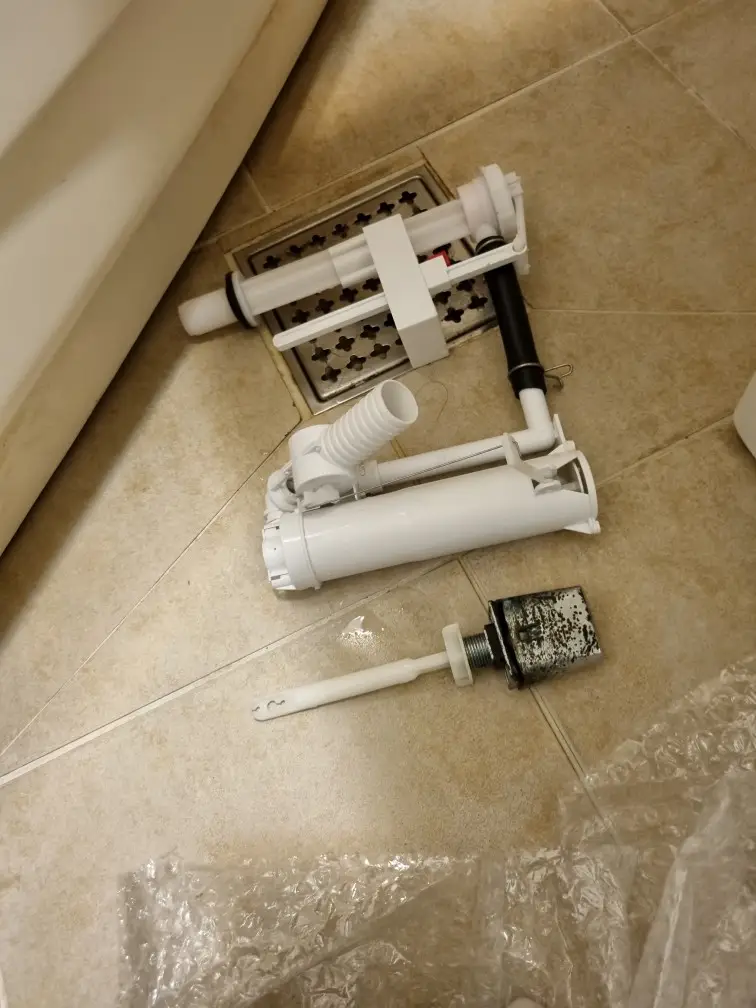 새로 준비한 제품은 호환성이 높은 최신형 급수 밸브 세트와 플런저입니다. 먼저 물탱크 바닥에 플로트 어셈블리 본체를 끼우고, 아래쪽에서 너트를 조여 단단히 고정했습니다. 고정이 끝나면 높이 조절 기능을 활용해 물탱크 높이에 맞춰 플로트 위치를 맞췄습니다. 이어서 플런저(플러시 밸브)를 설치해 연결 레버와 체인을 정렬하고, 핸들을 당겼을 때 2~3cm 정도 여유를 두고 움직이도록 체인을 조절했습니다. 이 과정에서 체인이 너무 팽팽하면 플런저가 제대로 닫히지 않고, 너무 느슨하면 물이 잘 내려가지 않기 때문에 몇 차례 테스트를 반복하며 최적의 장력을 맞췄습니다.