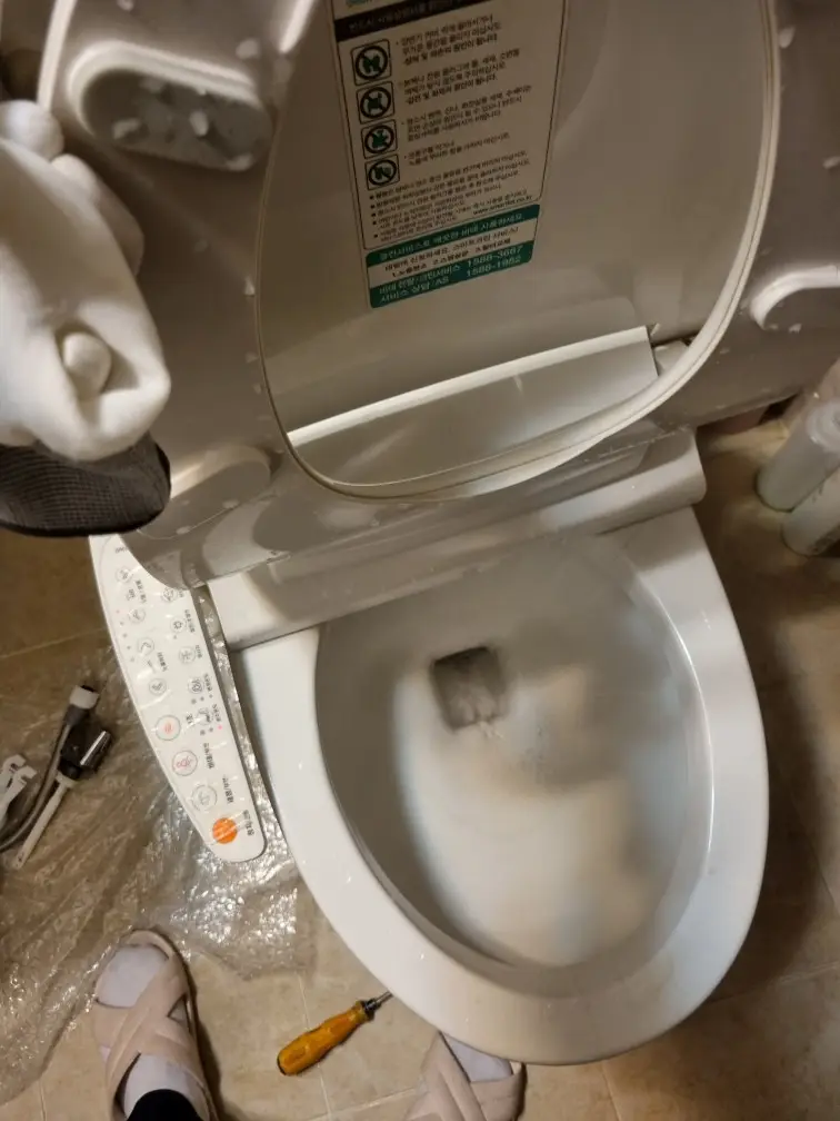 모든 부품이 제자리에 고정된 후 급수 밸브를 열어 물을 채우고 누수 여부를 확인했습니다. 새 부품은 움직임이 부드럽고 이상 소음도 없어 고객님이 크게 만족하셨습니다. 마지막으로 물탱크 내부에 남아 있던 슬러지와 벽면을 깨끗이 닦아내고, 향후 관리 팁을 안내해 드렸습니다. 한 달에 한 번 정도 플런저 주변에 들러붙은 물때를 부드러운 솔로 살짝 닦아 주고, 급수 밸브에서 물이 계속 흐르는지 육안으로 점검하면 수명을 더 길게 쓸 수 있습니다. 물이 계속 흐르는 느낌이 들거나 소리가 나면 즉시 밸브를 잠그고 점검을 요청해 주세요.